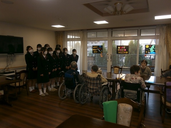 10月24日(金)倉敷商業高等学校書道部の生徒さん達がハロウィンの飾り付けに来てくれました。