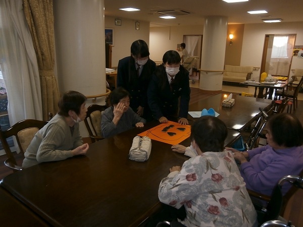 10月24日(金)倉敷商業高等学校書道部の生徒さん達がハロウィンの飾り付けに来てくれました。